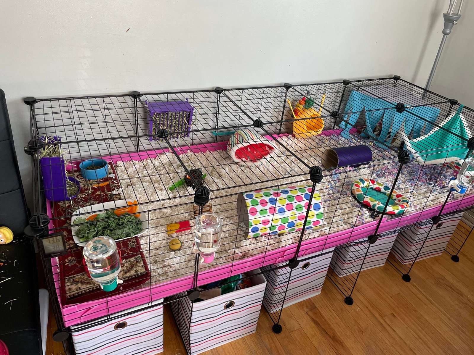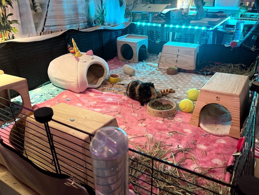 - For waterproof, fleece cage liner, we recommend “Guinea Pig Market“, “Guinea Dad“, “Kavee“, “Piggy Bedspreads” and “Etsy“.