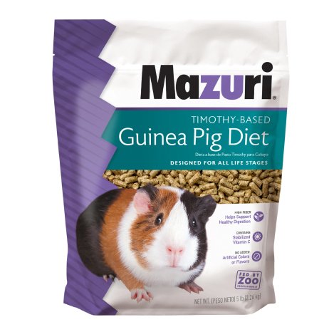 “Mix” pellets and treats with seed and corn can lead to chocking and malnutrition due to selective eating. The first ingredient listed for pellets should be timothy hay for adult guinea pig pellets or alfalfa hay for young guinea pigs.
